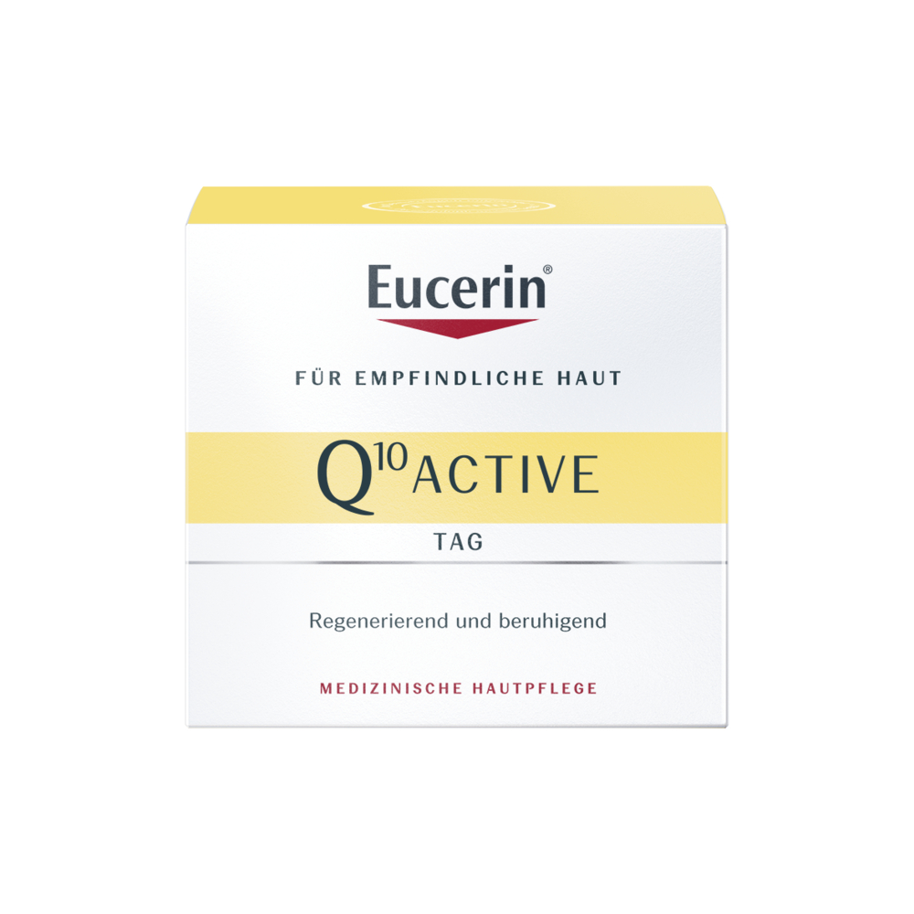 Eucerin Q10 ACTIVE Tagespflege wurde speziell mit dem hochwirksamen, hauteigenem Coenzym Q10 entwickelt, um den Zeichen der Hautalterung wie Falten bei empfindlicher Haut* entgegenzuwirken.