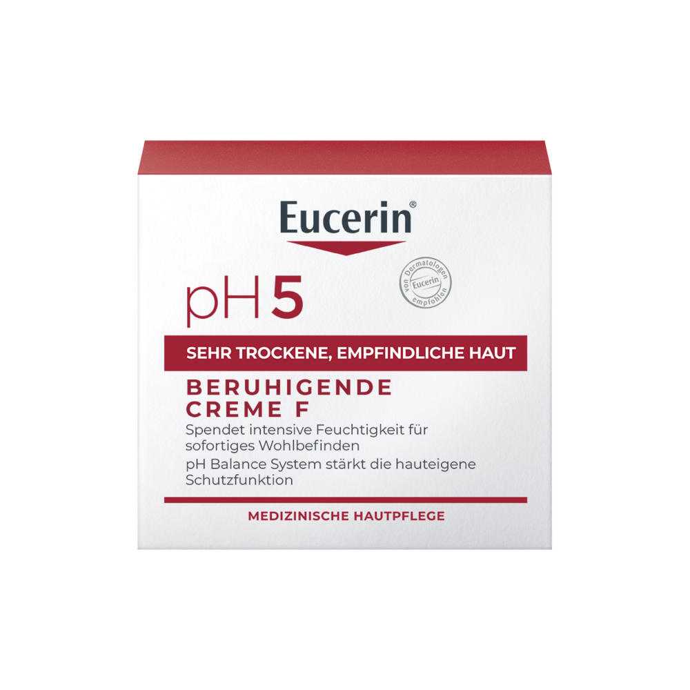Eucerin pH5 Creme F wurde speziell entwickelt, um empfindliche und sehr trockene Körper- und Gesichtshaut intensiv zu pflegen. Das einzigartige Eucerin pH Balance System mit dem pH5 Citratpuffer stellt den natürlichen pH-Wert der Haut wieder her. Gleichzeitig hilft 3% Dexpanthenol die Regeneration der Haut zu stimulieren und deren Widerstandskraft zu bewahren.
